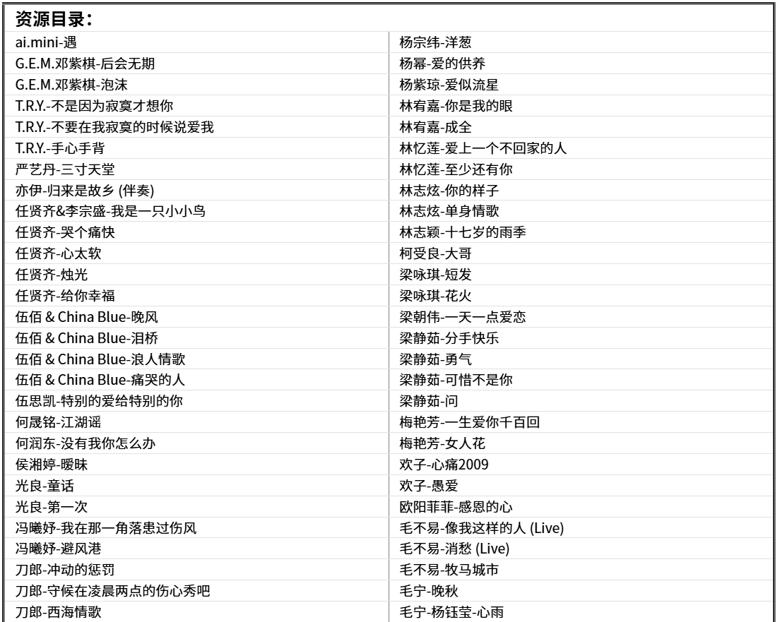 【经典伤感歌曲】盘点华语乐坛330首经典的伤感歌曲,每一首都催泪动听直触心灵[WAV+MP3+12GB] 栏目:音乐区 作者:资源库 时间:2025-11-26 01:42:22        **简介:** 从某宝价值199的付费U盘中下载得来,330首经典伤感歌曲合集! > [!success] **资源链接** > https://pan.quark.cn/s/9511419ea3a2 版权声明:本站不存储任何实质资源,该帖为发布的网盘链接介绍帖。如您认为本站任何介绍帖侵犯了您的合法版权,请联系站长 ( 微信:KKK1258868 ) 进行投诉,我们将在确认本文链接指向的资源存在侵权后,立即删除相关介绍帖子!