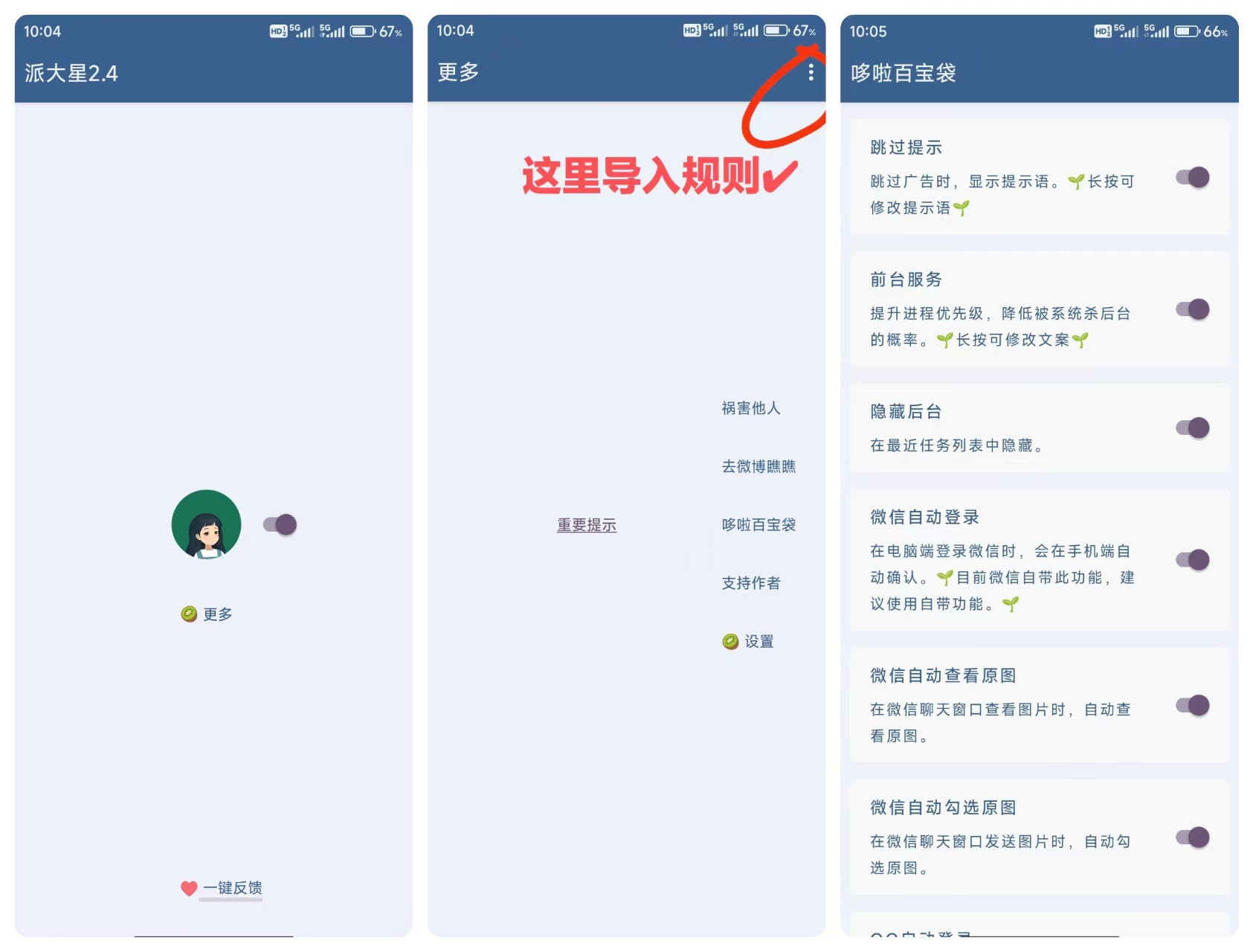 最新版李跳跳 2.4 安卓 附加5052条规则+使用方法🔥安卓手机必备! [ 3MB ] 栏目:软件区 作者:资源库 时间:2025-11-26 01:21:54   **软件简介:** 李跳跳是一款可以跳过开屏广告的安卓手机软件工具。其范围广、精确高、有效“干掉”广告的特点受到众多网友好评,被戏称为“互联网药神”。 **规则使用方法:** 打开规则文件,长按输入框,调动系统自带的粘贴功能复制规则 **注意事项:** 1、不要使用输入法复制,输入法的复制字数有上限,复制的内容不完整 2、规则分为两个文件,两个文件的内容是一个整体,一定要都放进去拼接好在导入,不然会导入失败 > [!success] **资源链接** https://pan.quark.cn/s/5023e3aa1679 版权声明:本站不存储任何实质资源,该帖为发布的网盘链接介绍帖。如您认为本站任何介绍帖侵犯了您的合法版权,请联系站长 ( 微信:KKK1258868 ) 进行投诉,我们将在确认本文链接指向的资源存在侵权后,立即删除相关介绍帖子!