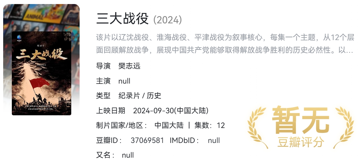 三大战役(2024)纪录片 12 集 1920*1080 超清中字 央视 7.5G 栏目:纪录片 作者:资源库 时间:2025-11-26 00:29:35   **简介:** 该片以辽沈战役、淮海战役、平津战役为叙事核心,每集一个主题,从12个层面回顾解放战争,展现中国共产党能够取得解放战争胜利的历史必然性。以真实影像和原始文献为基础,通过采访专家和战争亲历者,用地图演示、情景再现等手段,聚焦辽沈、淮海、平津三大战役,全景式展现了那段波澜壮阔的战争历程。 > [!success] **资源链接** > https://pan.quark.cn/s/acda47741f37 版权声明:本站不存储任何实质资源,该帖为发布的网盘链接介绍帖。如您认为本站任何介绍帖侵犯了您的合法版权,请联系站长 ( 微信:KKK1258868 ) 进行投诉,我们将在确认本文链接指向的资源存在侵权后,立即删除相关介绍帖子!