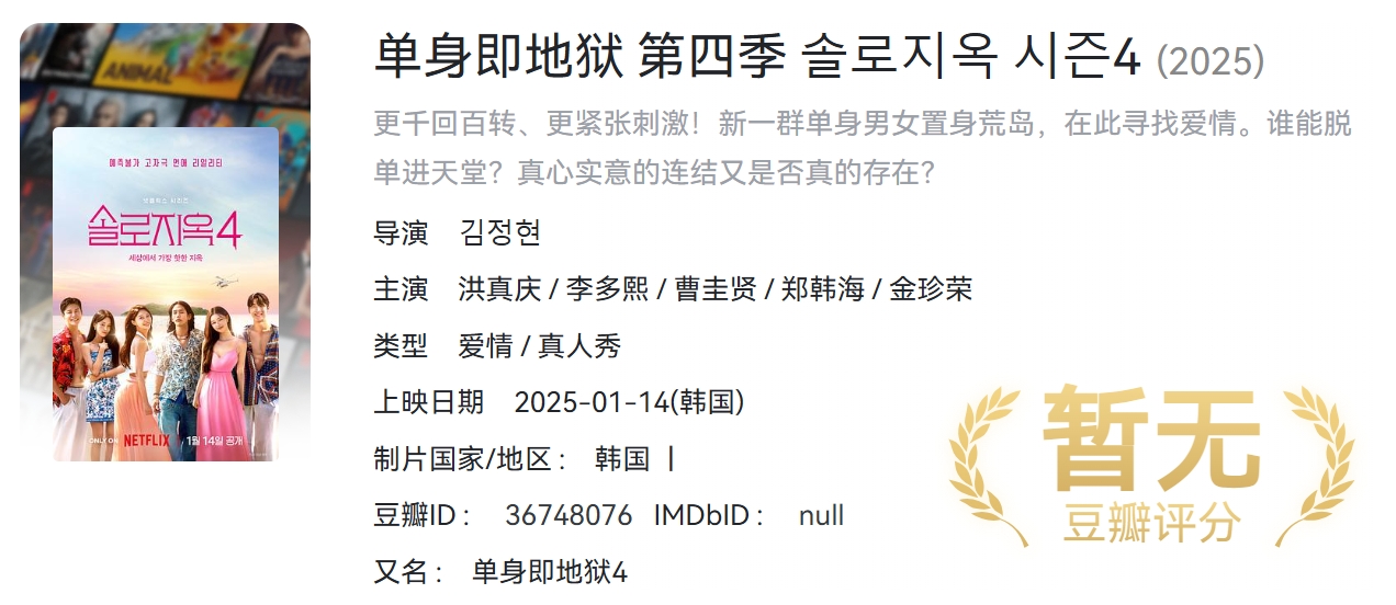 【2025韩综】《单身即地狱 第四季》 【同步更新】【附1-3季】[韩国]【1080P】【77.2G】【官中字幕】 栏目:综艺区 作者:资源库 时间:2025-10-27 23:56:56   **简介:** 俊男靓女被困“地狱岛”,逃离方法只有一个:每晚与某人成为情侣。配对成功的人当晚可搬去“天堂岛”,享受优质食物和住宿,而未找到伴的人,晚上得在“地狱岛”自力更生 > [!success] **资源链接** >https://pan.quark.cn/s/43726ca9b252 版权声明:本站不存储任何实质资源,该帖为发布的网盘链接介绍帖。如您认为本站任何介绍帖侵犯了您的合法版权,请联系站长 ( 微信:KKK1258868 ) 进行投诉,我们将在确认本文链接指向的资源存在侵权后,立即删除相关介绍帖子!