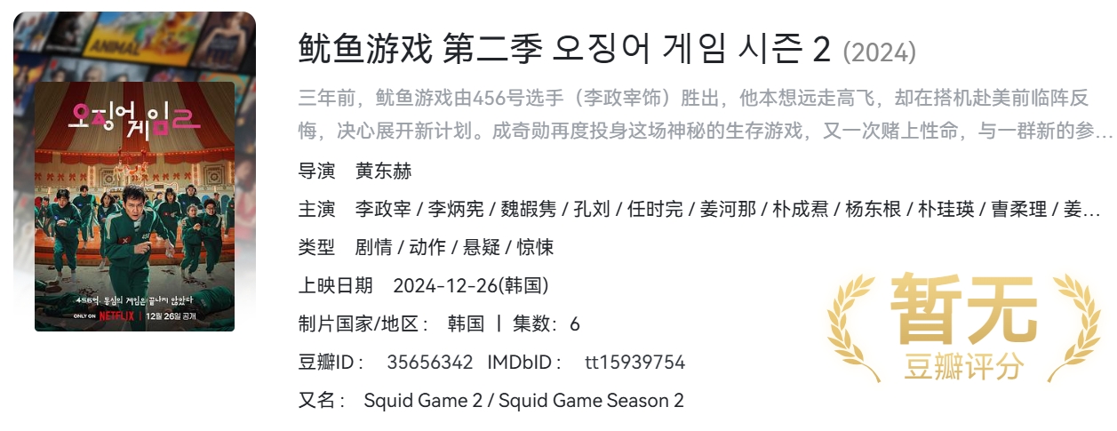 鱿鱼游戏 第二季(2024)【两季全】【NF / 4K / HDR10 / 高码率】【6G/集】【杜比全景声】【韩英双语】【内封中字】 栏目:剧集区 作者:资源库 时间:2025-11-26 00:39:02   **简介:** 三年前,鱿鱼游戏由456号选手(李政宰饰)胜出,他本想远走高飞,却在搭机赴美前临阵反悔,决心展开新计划。成奇勋再度投身这场神秘的生存游戏,又一次赌上性命,与一群新的参赛者一起争夺高达456亿韩元的奖金。 > [!success] **资源链接** > https://pan.quark.cn/s/cb6da26cca2f 版权声明:本站不存储任何实质资源,该帖为发布的网盘链接介绍帖。如您认为本站任何介绍帖侵犯了您的合法版权,请联系站长 ( 微信:KKK1258868 ) 进行投诉,我们将在确认本文链接指向的资源存在侵权后,立即删除相关介绍帖子!
