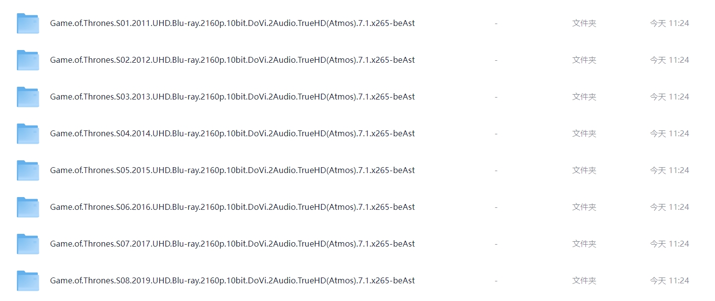 终极收藏《权力的游戏》全八季合集 【4K 蓝光HDR 杜比视界】【英简繁&双语特效SUP字幕】【1.03T】 栏目:剧集区 作者:资源库 时间:2025-11-26 00:38:32     **简介:** 《权力的游戏》改编自美国作家乔治·R·R·马丁的奇幻小说《冰与火之歌》系列,讲述了在一个虚构的世界中分为两片大陆:位于西面的“日落国度”维斯特洛;位于东面的类似亚欧大陆。维斯特洛大陆边境处发现远古传说中早已灭绝的生物开始,危险也渐渐在靠近这里。这片大陆的临冬城主暨北境统领艾德史塔克家族也迎来了老友兼国王劳勃·拜拉席恩的来访。国王希望艾德·史塔克能担任首相一职,对抗企图夺取铁王座的叛军的故事。 该剧于2011年4月17日在美国播出。该剧在2015年第67届艾美奖中破纪录斩获12项大奖,包揽了最佳剧情、导演、编剧、男配等大奖。**2016年,该剧被选为被评为最佳电视剧,同时还获评最佳剧本和最佳导演,成为艾美奖有史以来获奖最多的剧情类电视剧。**2018年,获得第70届艾美奖最佳剧集奖。2019年9月,该剧被英国《卫报》评选为21世纪100部最佳电视剧,名列第7位。 **PS:很多人反应没有字幕,使用夸克自带的播放器无法显示,夸克无法识别软特效字幕,请下载或者挂载后使用专业播放器,电脑端推荐potplayer!** > [!success] **资源链接** https://pan.quark.cn/s/5148e6bb1e0a 版权声明:本站不存储任何实质资源,该帖为发布的网盘链接介绍帖。如您认为本站任何介绍帖侵犯了您的合法版权,请联系站长 ( 微信:KKK1258868 ) 进行投诉,我们将在确认本文链接指向的资源存在侵权后,立即删除相关介绍帖子!