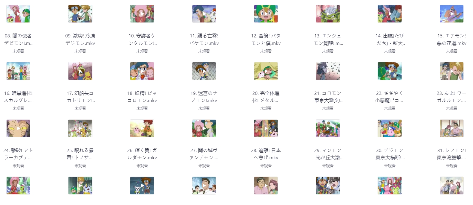 数码宝贝(1999) S01-S08季.1080p.国粤日三语版+剧场版+OVA共10部 栏目:动漫区 作者:资源库 时间:2025-11-26 02:08:00    **简介:** **名称:**数码宝贝 デジモンアドベンチャー **导演:**细田守 **编剧:**本乡昭由,西园悟,雅木宏,前川淳 **主演:**藤田淑子,风间勇刀,水谷优子。天神有海 **类型:**动作,动画,惊悚,家庭,奇幻,冒险 **制片地区:**日本 **上映时间:**1999-03-07(日本) **影视语言:**日语 **评分:**9.5 **剧情简介:** 1999年,由于数码世界资料异常增生,导致数码世界和现实世界的连接发生紊乱。地球上相应地出现奇怪的自然现象:东南亚没有下雨,池塘全部干涸;中东却因为连场大雨发生洪水;美国则遇到有史以来最寒冷的冬天。11岁的少年八神太一(藤田淑子配音),和伙伴石田大和(风间勇刀配音)、武之内空(水谷优子配音)、泉光子郎(天神有海配音)、太刀川美美(前田爱配音)、城户丈(菊池正美配音)、高石武(小西寛子配音)一起参加了夏令营,一次意外却被神秘地送到了一个多彩的数码世界。在那里,他们得到了叫做“数码宝贝”的搭档。进入数码世界后,八神太一一行人遇到了凶恶的怪兽贝壳兽,眼看大家都要被抓住的时候,太一的亚古兽忽然进化成为暴龙兽,拯救了他们。进化到底是怎么回事情?数码世界究竟是什么?无数的谜团出现在被召选的小朋友们面前,精彩的冒险就这样开始了…… > [!success] **资源链接** > https://pan.quark.cn/s/9d0cdac223ec 版权声明:本站不存储任何实质资源,该帖为发布的网盘链接介绍帖。如您认为本站任何介绍帖侵犯了您的合法版权,请联系站长 ( 微信:KKK1258868 ) 进行投诉,我们将在确认本文链接指向的资源存在侵权后,立即删除相关介绍帖子!
